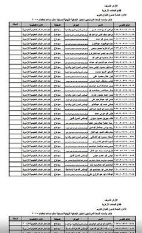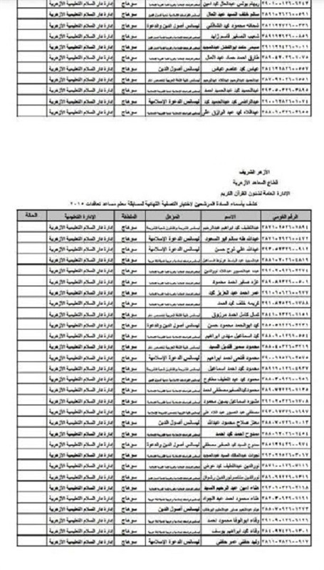 تنشر "السبورة" أسماء المرشحين لاختبارات التصفية النهائية لوظيفة معلم مساعد بسوهاج وهي كالتالي:-