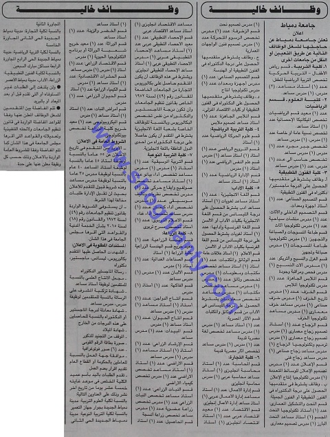 جامعة دمياط عن حاجتها للتعاقد مع أعضاء هيئة التدريس وذلك في التخصصات التالية:
