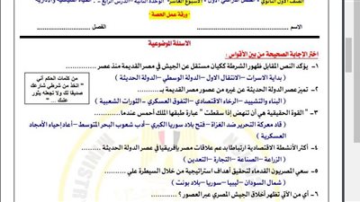 مراجعات نهائية.. أسئلة تقييم الأسبوع العاشر التاريخ الصف الأول الثانوي