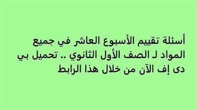 أسئلة تقييم الأسبوع العاشر في جميع المواد لـ الصف الأول الثانوي.. تحميل بي دى إف الآن من خلال هذا الرابط