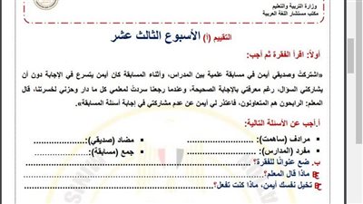 مراجعات نهائية.. أسئلة تقييم الأسبوع الـ 13 في اللغة العربية الصف الرابع الابتدائي