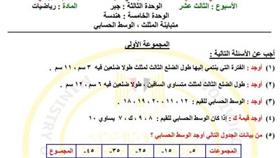 مراجعات نهائية.. أسئلة تقييم الأسبوع الـ 13 الرياضيات لـ الصف الثاني الإعدادي