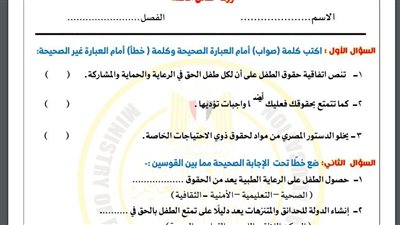 أسئلة تقييم الأسبوع الـ 14 في جميع المواد لـ الصف الرابع الابتدائي.. تحميل بي دى إف الآن من خلال هذا الرابط