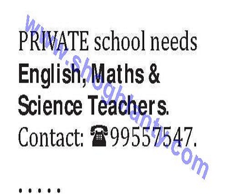 تعلن مدرسة خاصة في سلطنة عمان عن حاجتها للتعاقد مع معلمين في المواد التالية: