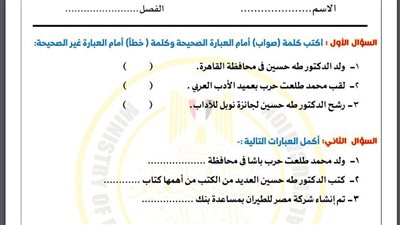 - نموذج امتحان اللغة العربية للصف الرابع ابتدائي