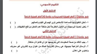 مراجعات نهائية.. لطلاب الصف الرابع الابتدائي.. أسئلة تقييم الاسبوع الـ 15 في الكمبيوتر