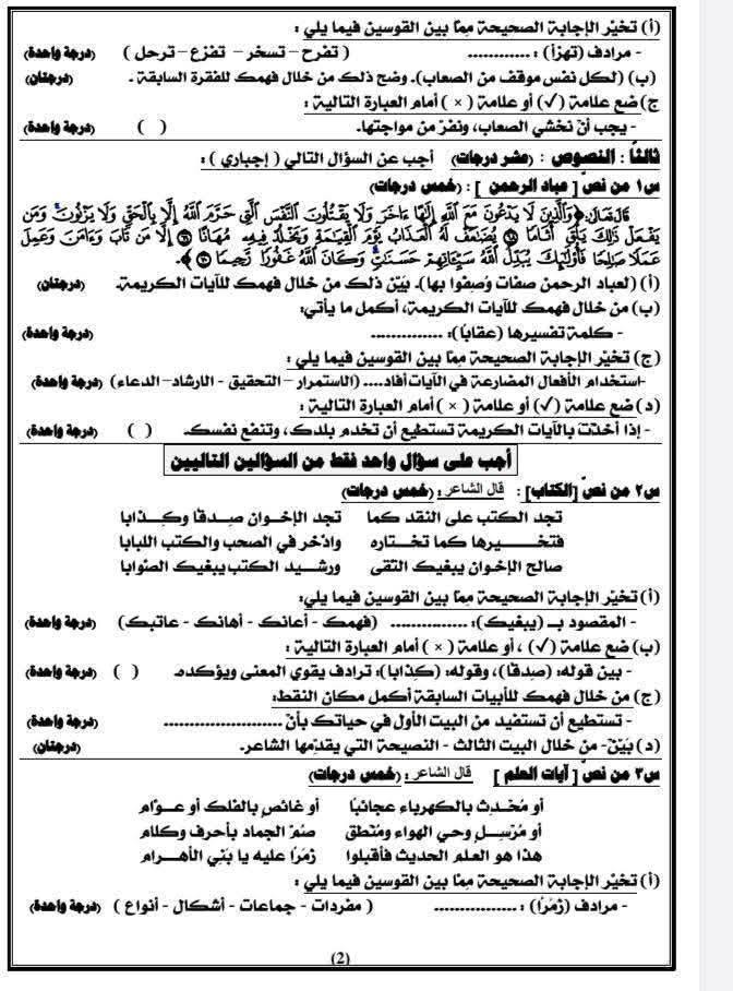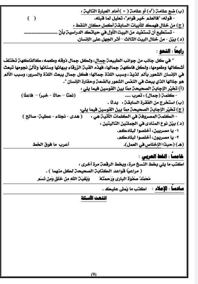 لن يخرج عنها امتحان اللغة العربية لـ الشهادة الإعدادية