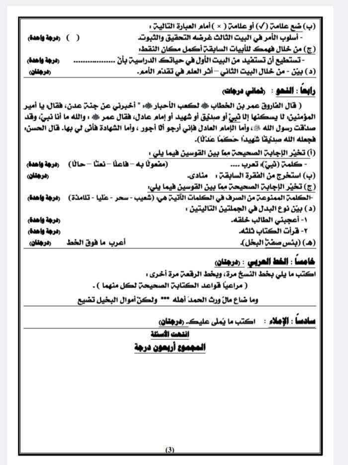 - مراجعات نهائيه امتحان لغة عربية ثالثة إعدادي