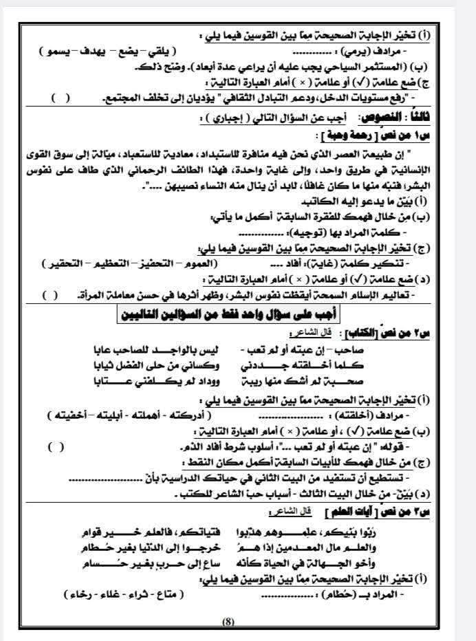 - اللغة العربية مراجعات نهائية الصف الثالث الإعدادي