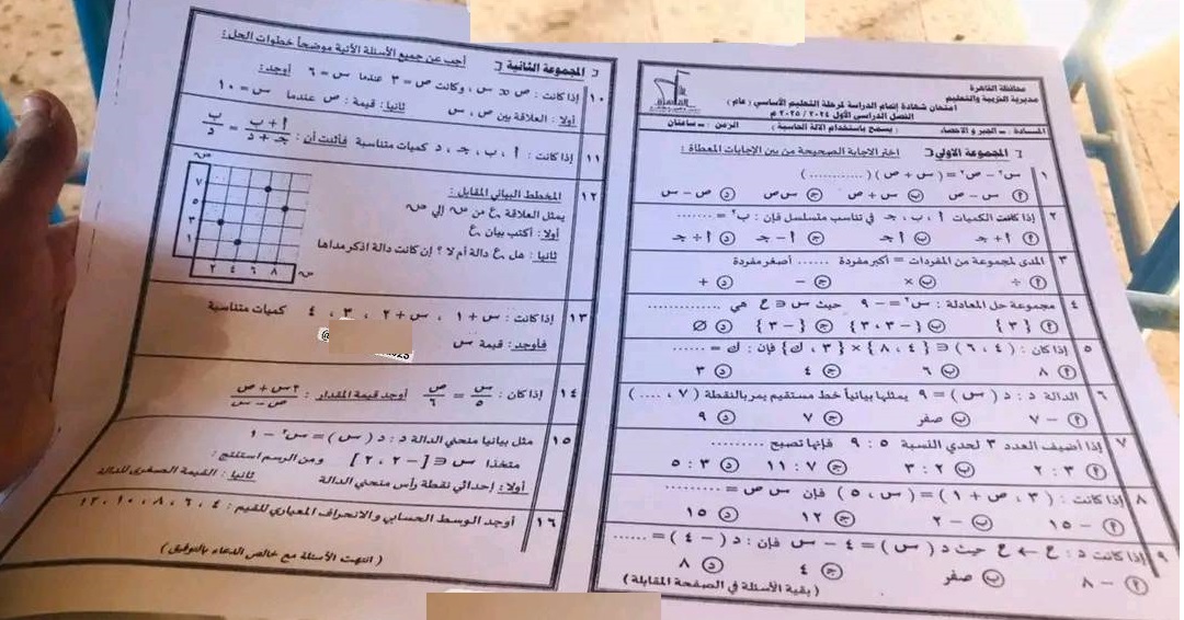 - حل امتحان جبر ثالثة إعدادي محافظة القاهرة 2025