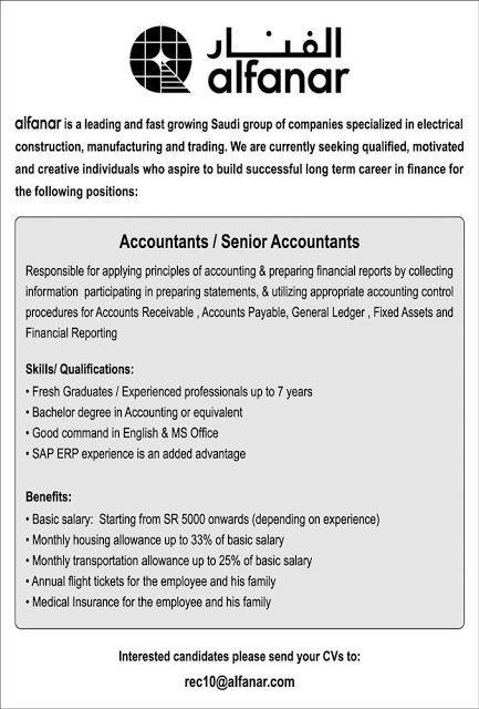 عاجل .. مطلوب محاسبين بشركة الفنار السعودية بمرتب 10000 ألف جنيه.. ننشر كافة التفاصيل