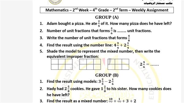 مراجعات نهائية.. لطلاب الصف الرابع الابتدائي.. أسئلة تقييم الاسبوع الثاني في الرياضيات ترم ثاني