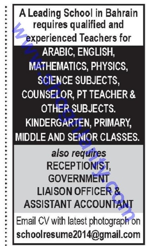تعلن مدرسة خاصة في دولة البحرين عن حاجتها للتعاقد مع معلمين وذلك في المواد التالية :