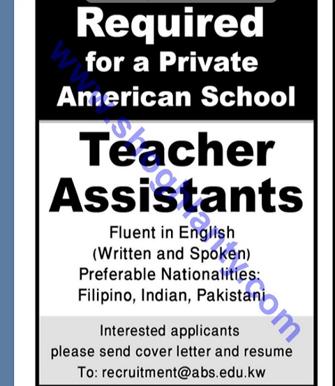 تعلن المدارس الامريكية بالكويت عن حاجتها إلى معلمين فى اللغة الانجليزية، وعلى الراغبين فى التقدم ارسال السيرة الذاتية على الايميل التالى:- [email protected]