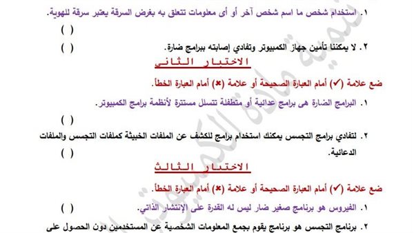 لطلاب الصف الثاني الإعدادي.. أسئلة تقييمات الأسبوع العاشر الكمبيوتر