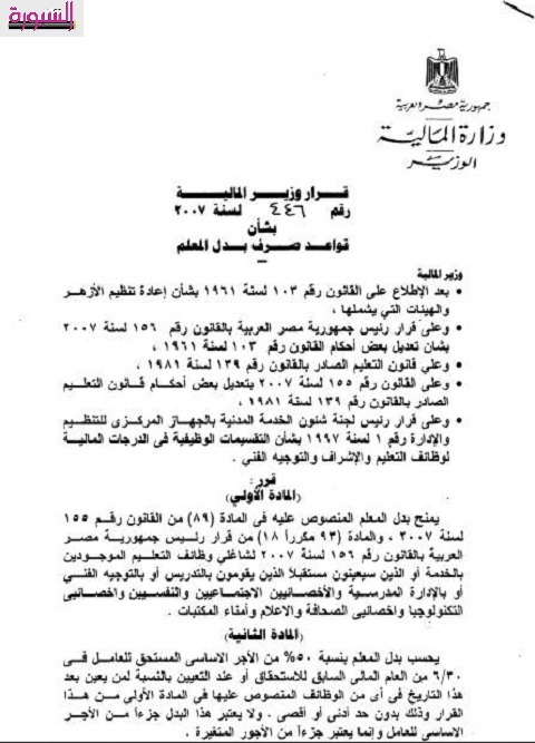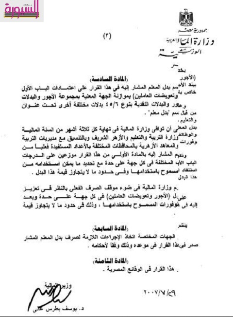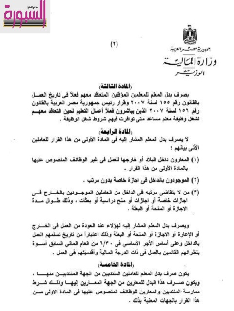 تنشر "السبورة" قرار الدكتور هاني ديميان وزير المالية بصرف اعتماد المعلمين المعينين وذلك علي وفقا للقواعد التالية:
