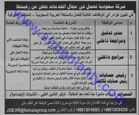 تعلن شركة خاصة في المملكة العربية السعودية عم حاجتها للتعاقد مع محاسبين وذلك وفقا للشروط التالية:
