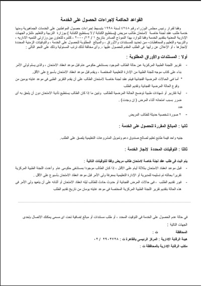 ننشر المستندات والأوراق المطلوبة لطلب عقد لجنة خاصة لامتحان طالب مريض