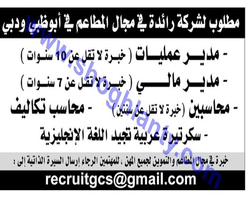 تعلن شركة في أبوظبي ودبي عن حاجتها للتعاقد مع محاسبين وذلك وفقا للشروط التالية: