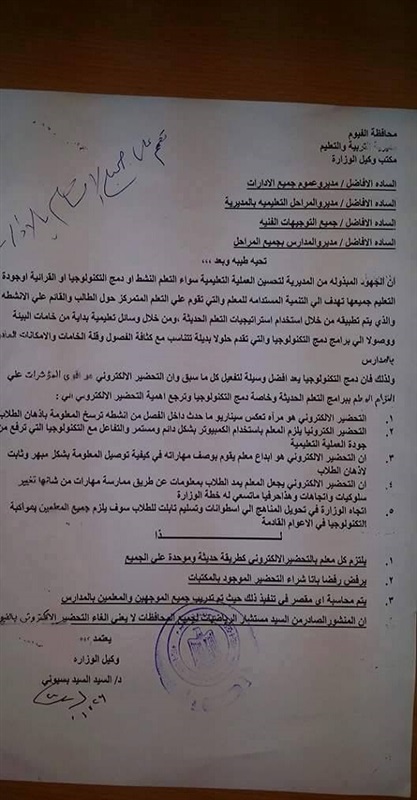 أكدت مديرية التربية والتعليم بمحافظة الفيوم على تفعيل استخدام طريقة التحضير الإلكتروني لجميع المعلمين وعلى جميع المراحل المختلفة، الأمر الذي يطور من أسلوب المعلم داخل الفصل الدراسي ويؤثر إيجابيا على مستوى الطلاب.