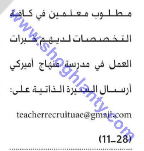 تعلن مدرسة خاصة في دولة الامارات العربية المتحدة عن حاجتها للتعاقد مع معلمين في جميع المواد وذلك وفقا للشروط التالية: