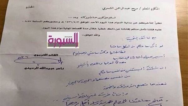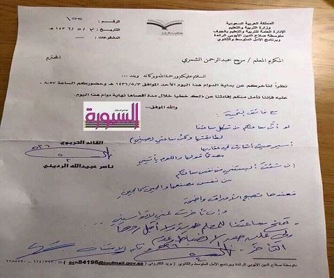بالمستند| مدير مدرسة سعودى يهدى ساعته لمعلم لتأخره عن العمل