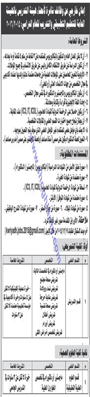 تعلن الهيئة العامة للتعليم التطبيقى والتدريب للعام الدراسى 2016/2015 بالمملكة العربية السعودية عن حاجتها لوظائف أعضاء هيئة تدريس، وعلى الراغبين فى التقدم ارسال السيرة الذاتية على الايميل التالى: [email protected] على أن يكون آخر موعد لتسليم الطلبات 19 ديسمبر الجارى.