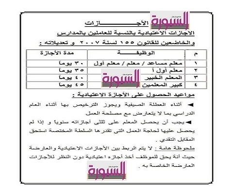 * مواعيـــد وشروط وقواعد للحصـــول علـــى الاجـــازات الاعتيــادية