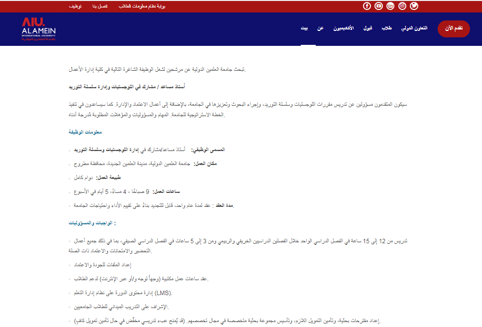 للتقديم في وظيفة جامعة العلمين الدولين عبر الموقع الرسمي اضغط هنا