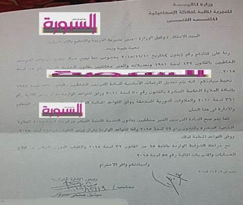 انفراد بالمستندات..المالية : تعديل أساسي مرتبات المعلمين الشهرالمقبل..ننشر التفاصيل