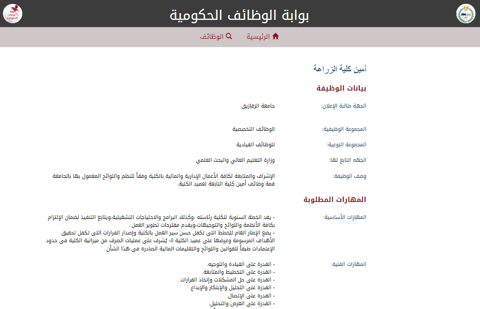 لمطالعة إعلان وظيفة جامعة الزقازيق عبر الموقع الرسمي والتقديم اضغط هنا