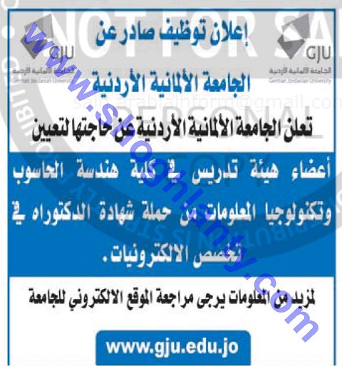 تعلن الجامعة الألمانية الأردنية عن حاجتها للتعاقد من أعضاء هيئة تدريس وذلك في التخصصات التالية: