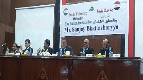 جاء ذلك خلال زيارة السفير لجامعة بنها بحضور الدكتور على شمس الدين رئيس الجامعة والدكتور جمال اسماعيل والدكتور سليمان مصطفى والدكتور هشام أبو العينين نواب رئيس الجامعة لإفتتاح قسم جديد للغة الهندية ومعرض الصور الهندى وعقد لقاءا ومحاضرة مع طلاب الجامعة عن الحضارة الهندية