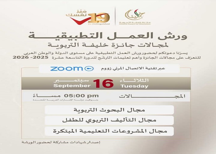 - ورش عمل تطبيقية عبر زووم جائزة خليفة