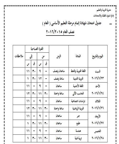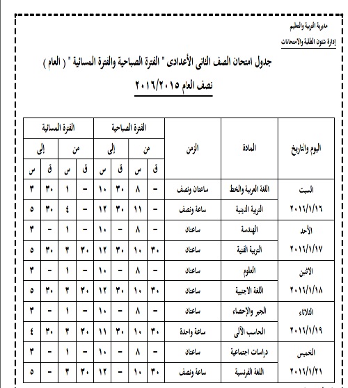 بالصور| جدول امتحانات المرحلة الاعدادية بالاسكندرية