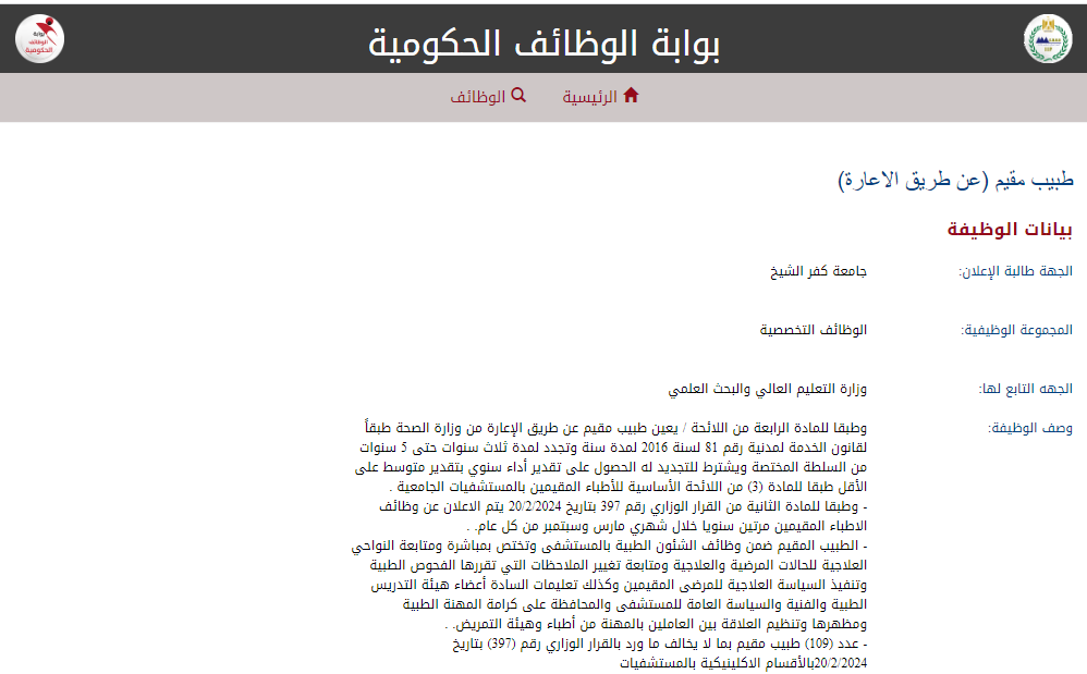 ويأتي هذا الإعلان تنفيذًا للقرار الوزاري رقم 397 الصادر في 20 فبراير 2024، والذي ينص على الإعلان عن هذه الوظائف مرتين سنويًا خلال شهري مارس وسبتمبر.