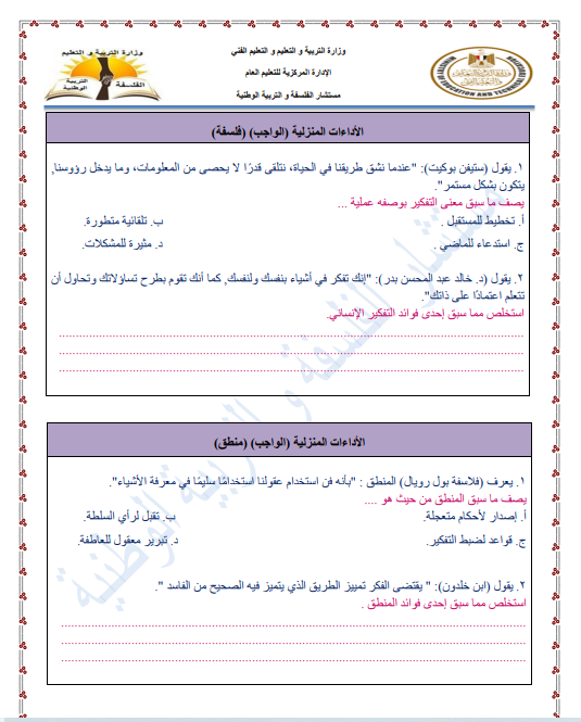 - مراجعات نهائيه امتحان الفلسفة والمنطق أولى ثانوي
