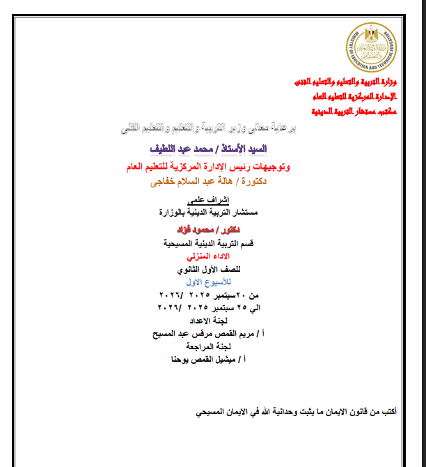 - مراجعات نهائيه امتحان التربية المسيحية أولى ثانوي