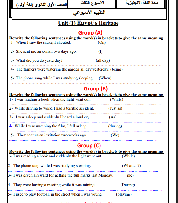 - مراجعات نهائيه امتحان اللغة الإنجليزية أول ثانوي