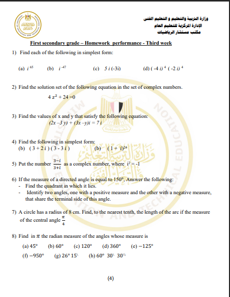 مراجعات نهائية.. أسئلة تقييم الأسبوع الثالث الرياضيات الصف الأول الثانوي