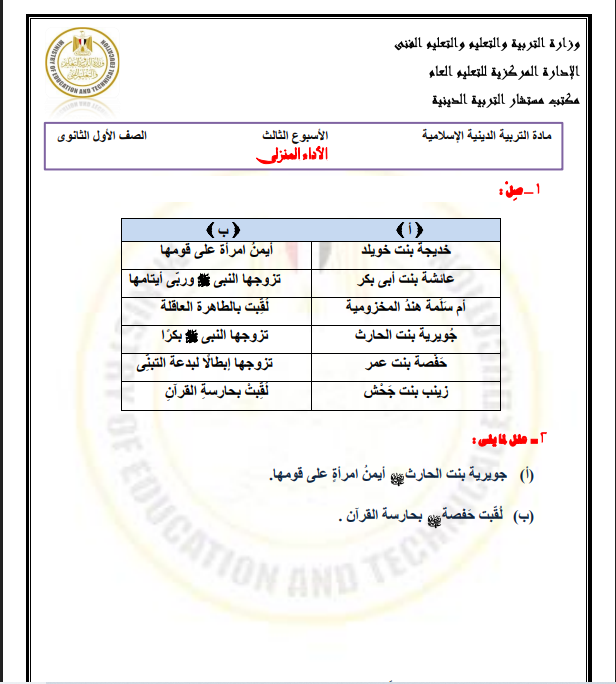 - مراجعات نهائيه امتحان التربية الاسلامية أولى ثانوي