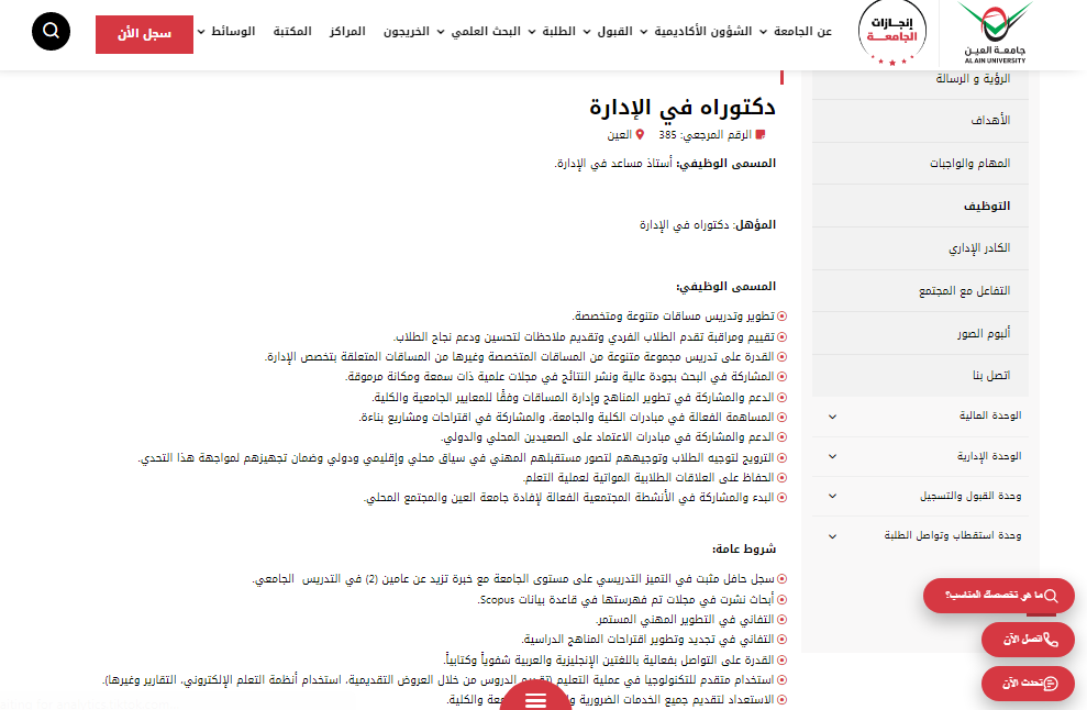 تؤكد جامعة العين من خلال هذا الإعلان التزامها بتوفير بيئة تعليمية محفزة وداعمة لأعضاء هيئة التدريس، حيث تتيح لهم فرصًا واسعة للتطوير المهني والمشاركة في مشاريع بحثية تخدم أهداف الجامعة واستراتيجيتها في خدمة المجتمع.