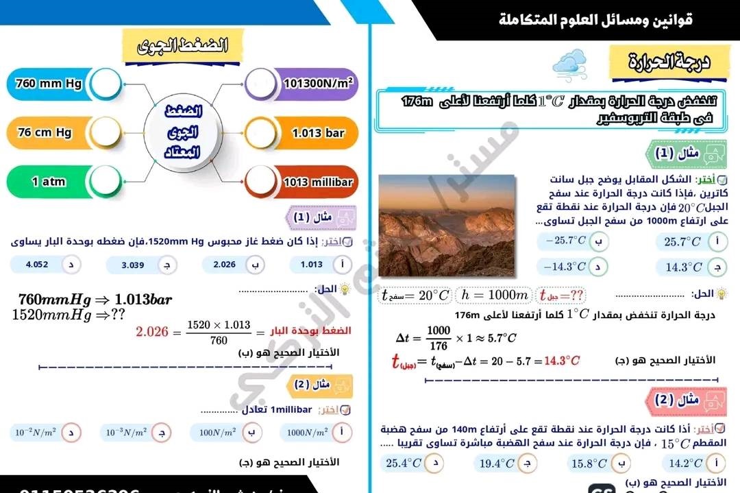 - مراجعات نهائيه امتحان العلوم المتكاملة أولى ثانوي