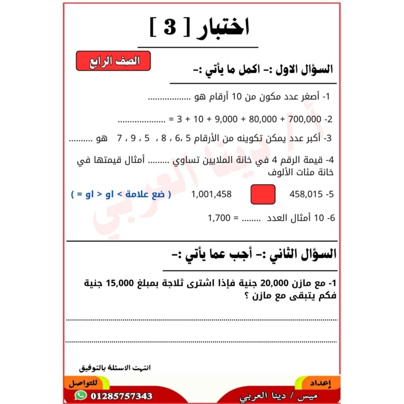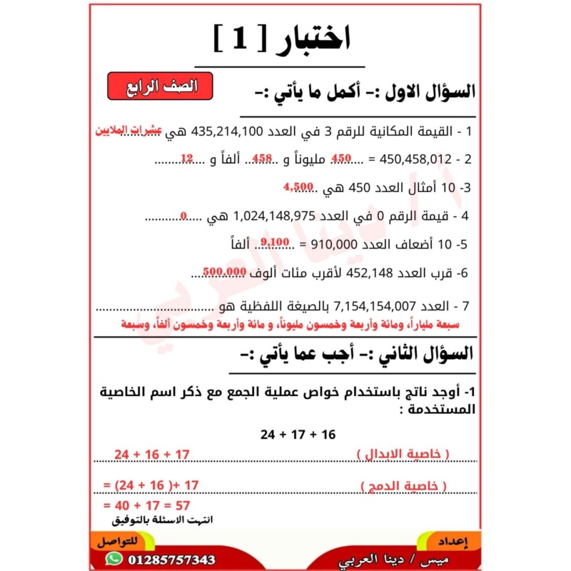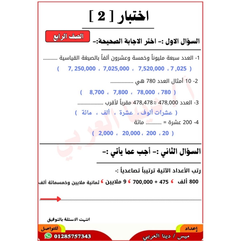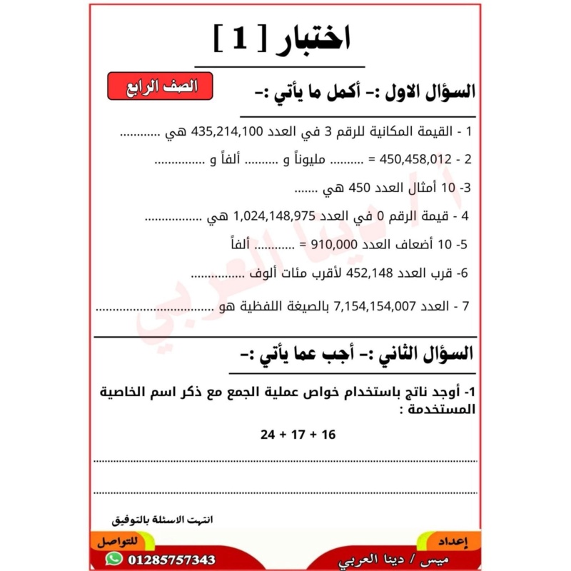 - مراجعات نهائيه امتحان الرياضيات رابعة ابتدائي