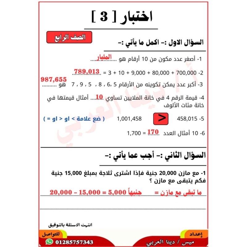 مراجعات نهائية.. 3 نماذج وإجابتها في الرياضيات لـ الصف الرابع الابتدائي، للعام الدراسي الجاري 2025-2026، في مراجعات نهائيه وتحميل 3 نماذج وإجابتها في الرياضيات، حيث يواصل موقع السبورة نشر مراجعة ليلة الامتحان من خلال تحميل أقوى 3 نماذج وإجابتها في الرياضيات، لطلاب وطالبات الصف الرابع الابتدائي، من خلال مراجعات نهائيه، واستعراض جميع نظام أسئلة امتحانات مادة الرياضيات، وشرح مبسط، واستعراض لـ 3 نماذج وإجابتها في الرياضيات، عن طريق نشر العديد من الامتحانات، لطلاب وطالبات الصف الرابع الابتدائي، في مراجعات نهائيه، لن يخرج عنها امتحان آخر العام، ومن خلال متابعة مراجعات نهائيه أعدها خبراء المادة في وزارة التربية والتعليم.