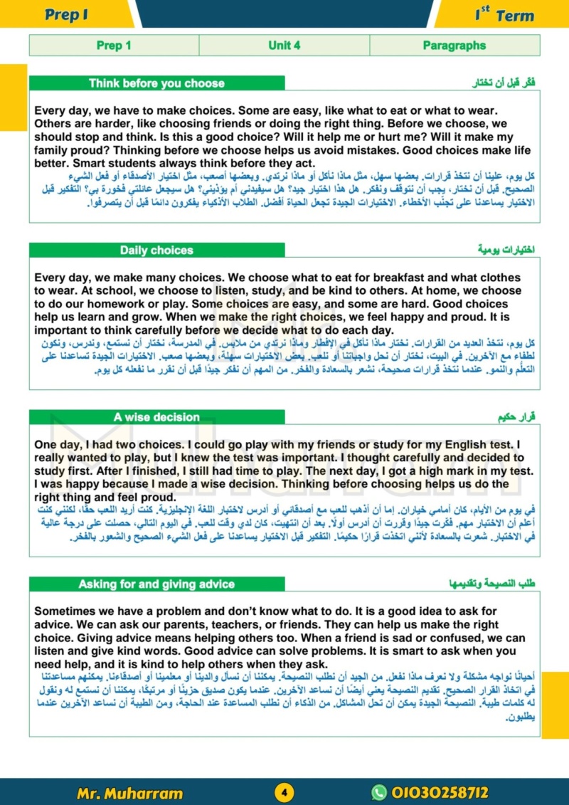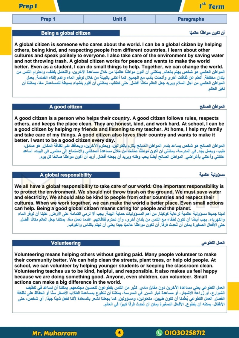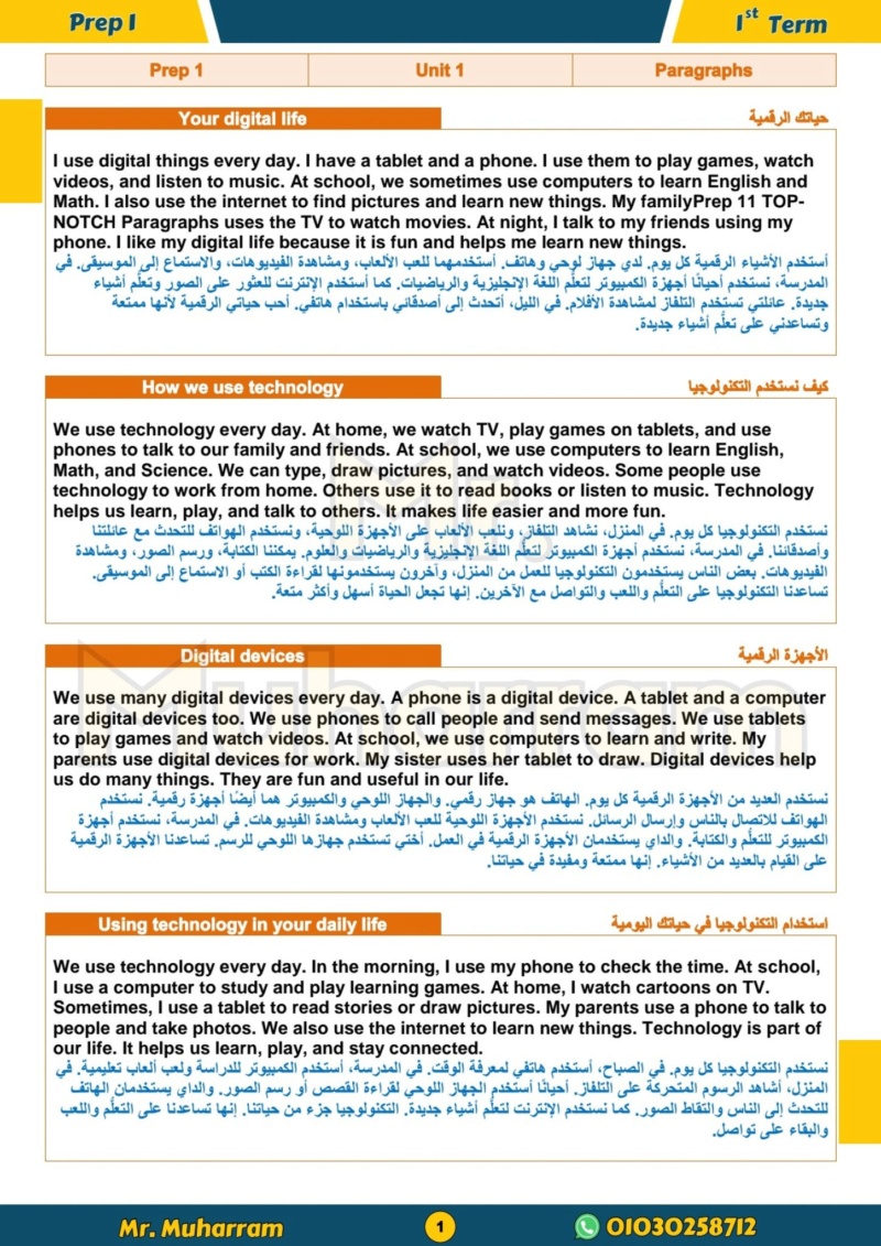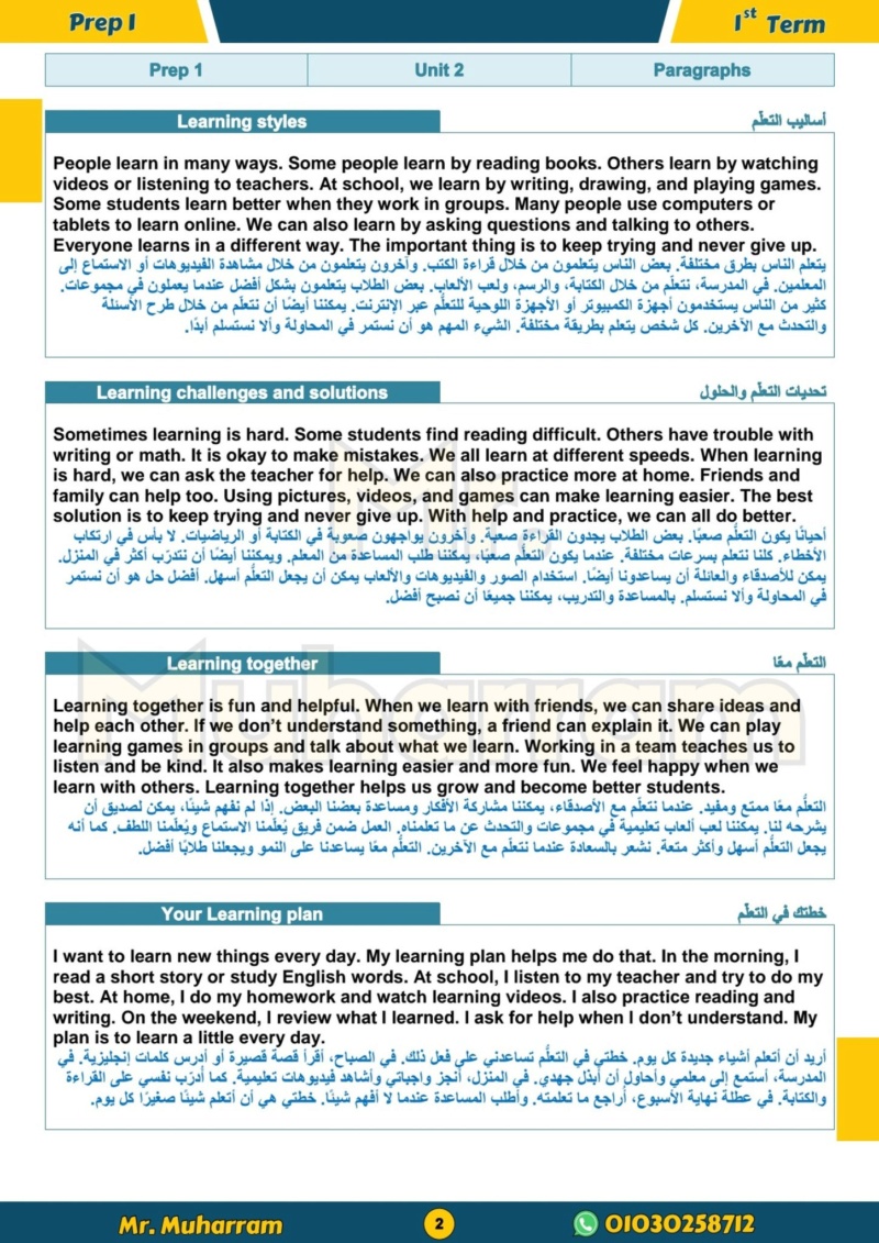 مراجعات نهائية.. 24 برجرافا مترجما في اللغة الانجليزية أولى اعدادي شهر أكتوبر