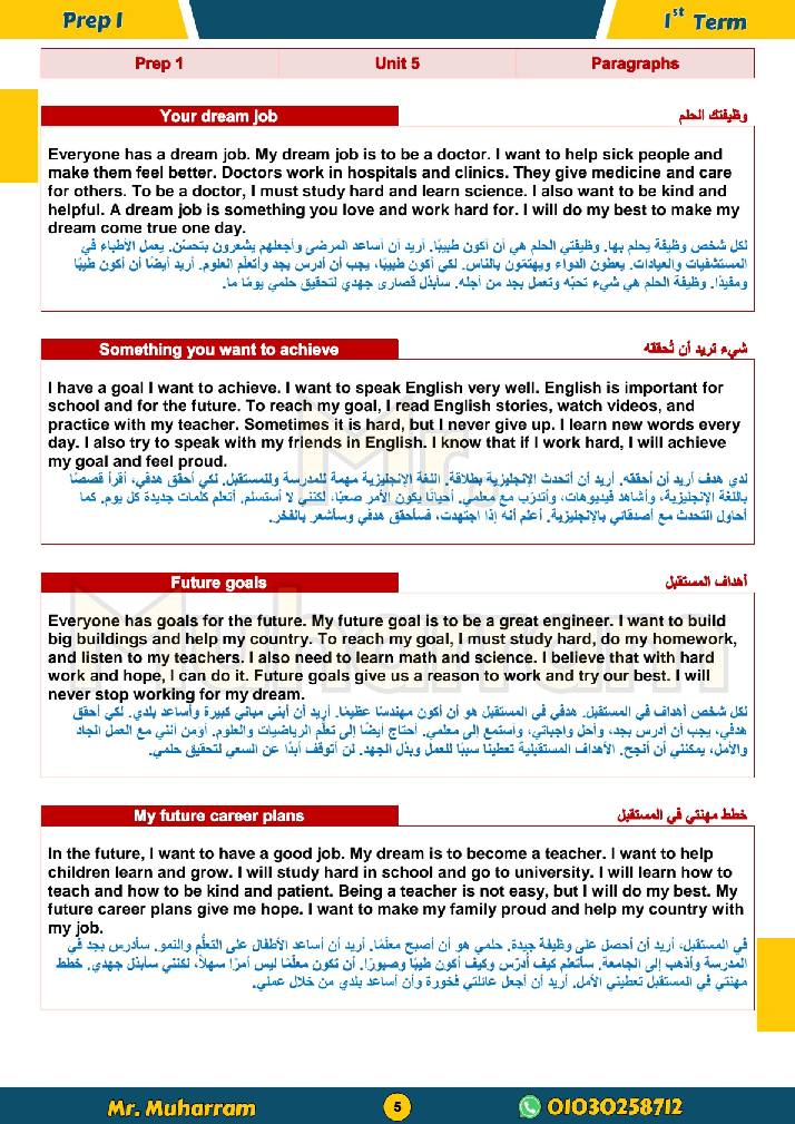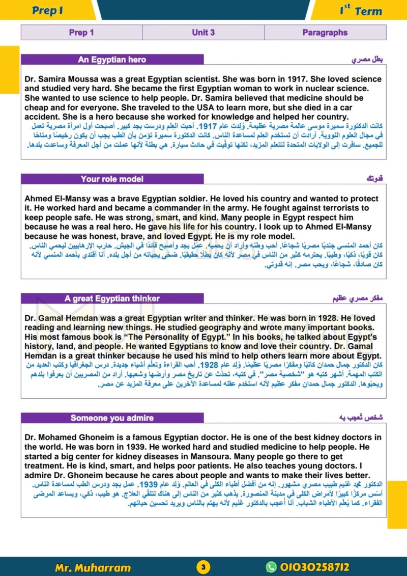 - 24 برجرافا مترجما لن يخرج عنها امتحان اللغة الانجليزية أولى اعدادي