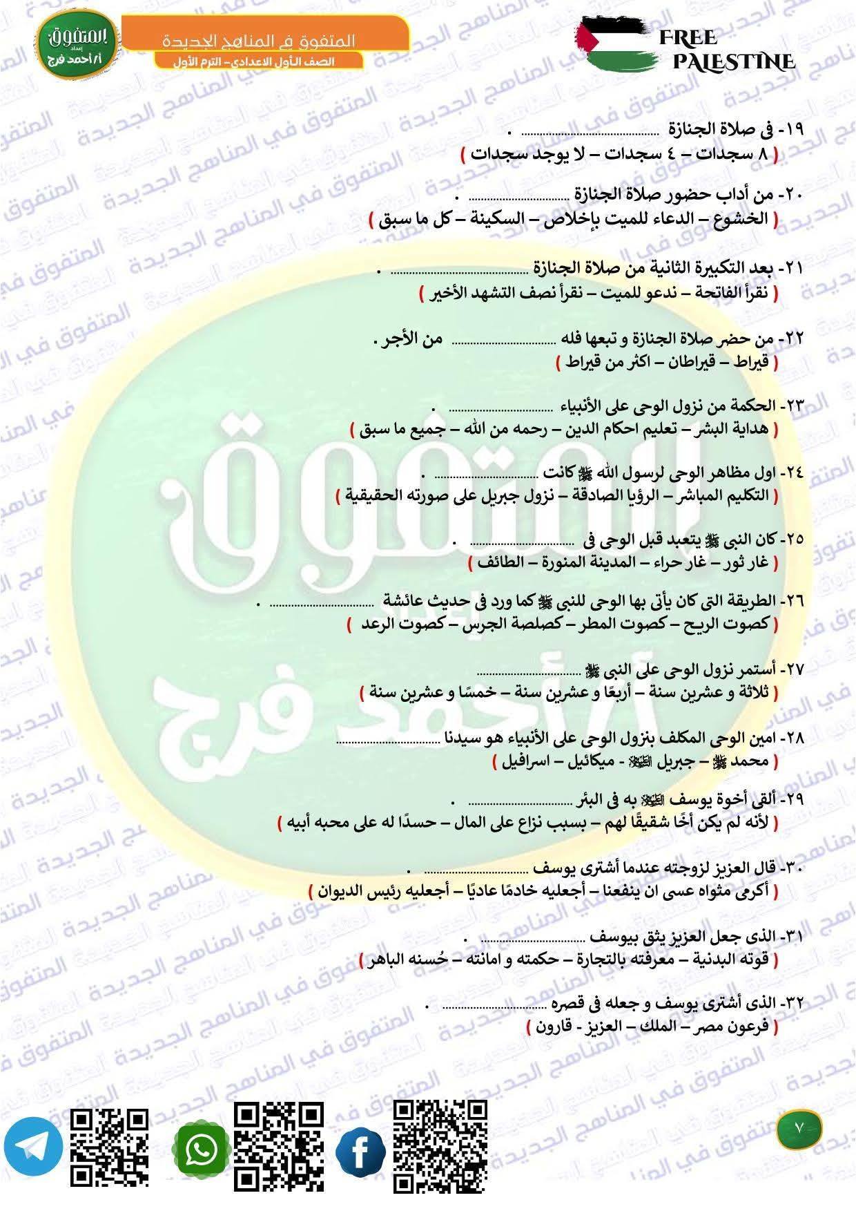 - التربية الاسلامية مراجعات نهائية الصف الأول الإعدادي