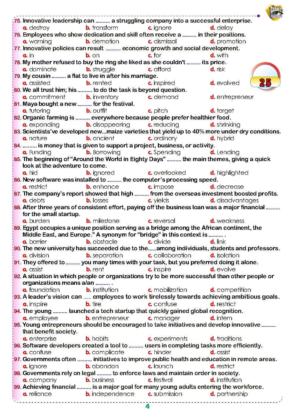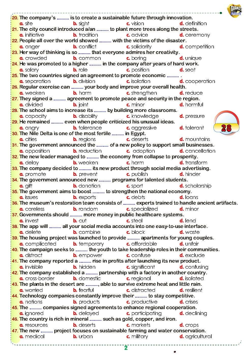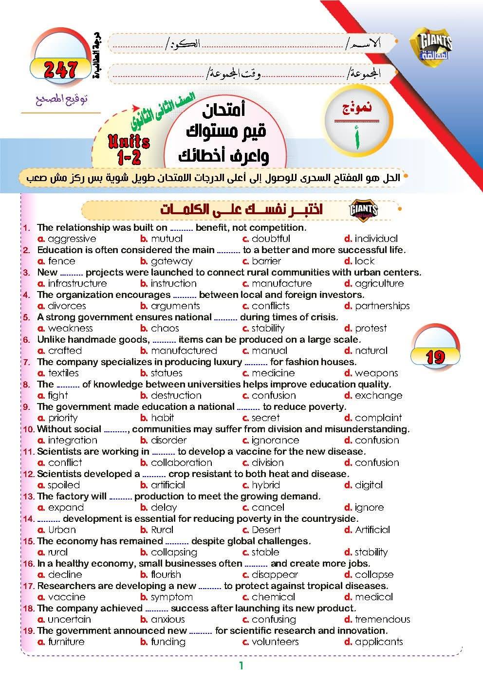 مراجعات نهائية.. 250 سؤالا في اللغة الانجليزية تضمن لك التفوق لـ الصف الثاني الثانوي، للعام الدراسي الجاري 2025-2026، في مراجعات نهائيه وتحميل مراجعة ليلة امتحان 250 سؤالا في اللغة الانجليزية تضمن لك التفوق لـ الصف الثاني الثانوي، حيث يواصل موقع السبورة نشر مراجعة ليلة الامتحان من خلال تحميل 250 سؤالا في اللغة الانجليزية تضمن لك التفوق لـ الصف الثاني الثانوي، من خلال مراجعات نهائيه، واستعراض جميع نظام أسئلة امتحانات مادة اللغة الانجليزية، وشرح مبسط، واستعراض مراجعة ليلة امتحان اللغة الانجليزي تضمن لك التفوق لـ الصف الثاني الثانوي، عن طريق نشر العديد من الامتحانات، لطلاب وطالبات الصف الثاني الثاني الثانوي، في مراجعات نهائيه، لن يخرج عنها امتحان آخر العام، ومن خلال متابعة مراجعات نهائيه أعدها خبراء المادة في وزارة التربية والتعليم.