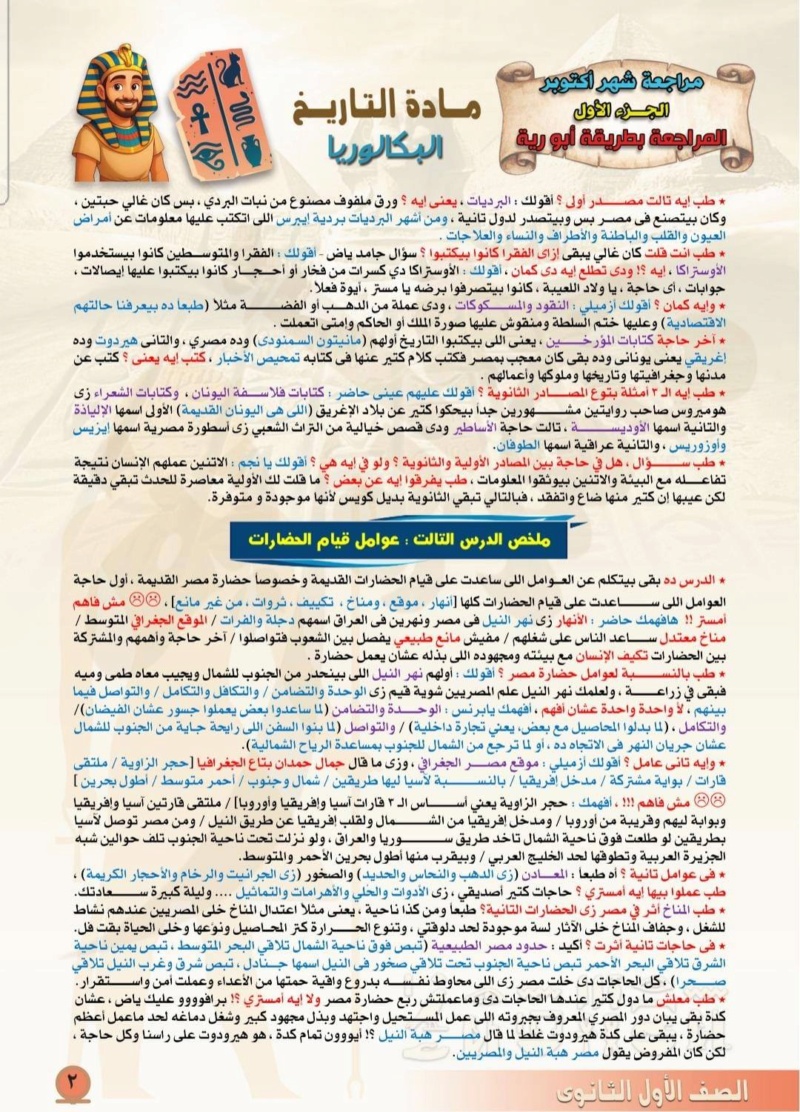 - تحميل مذكرات الصف الأول الثانوي التاريخ